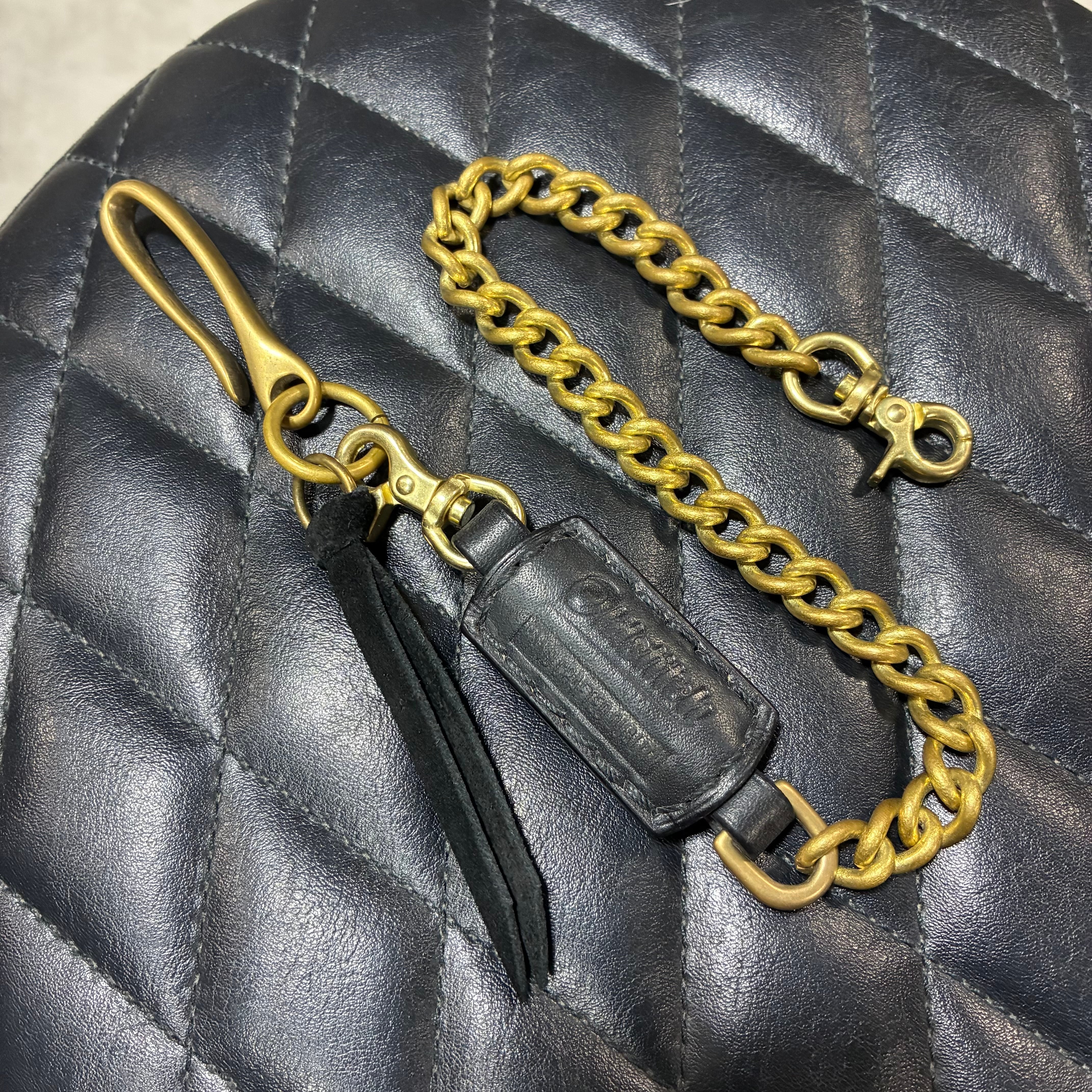 厚みのあるレザーを手縫いで仕立てウォレットチェーン。革紐もオールドステッチならではのアクセントポイントのひとつです。